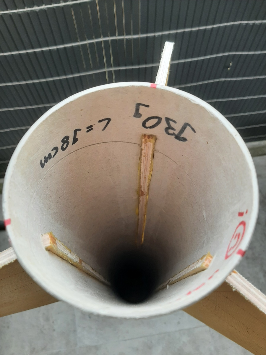 Da der Motor ja einen Durchmesser von 90mm hat, ist im inneren des 100er Körperrohrs nicht mehr viel Platz und so dienen die TTW verklebten Flossen direkt der Motorzentrierung...