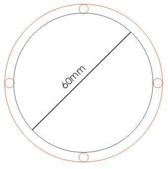 Wo ist bei Deinem oberen Vorschlag in der Mitte ein Durchmesser 60 mm zu messen? Es ist ein einziger Abstand 60 mm - es muss aber rundherum ein Durchmesser 60 messbar sein. Wo nix ist , kann man nix messen.