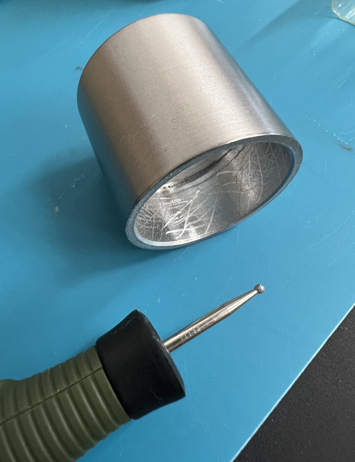 Um ihm den letzten Schliff zu geben im wahrsten Sinne des Wortes habe ich die äußere Oberfläche noch etwas überarbeitet..