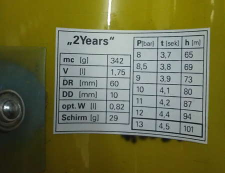 Dabei hatte ich die Rakete das erste Mal so am Schirm befestigt, das diese waagrecht am Schirm hängt. Zusätzlich dann noch einen deutlich kleineren Schirm. Die Bergung lief super und die Rakete trieb nur wenig ab. Der erste Flug (11 bar Startdruck) Die berechneten Werte für diese Rakete. Bei den nächsten beiden Starts, die wahrscheinlich ein gutes Stück höher waren, zählte der Höhenmesser mal wieder nicht. Irgendwie bin ich mit diesem Teil nicht so ganz zufrieden. Grüße Marcel If You Don't Try, You'll Never Know |