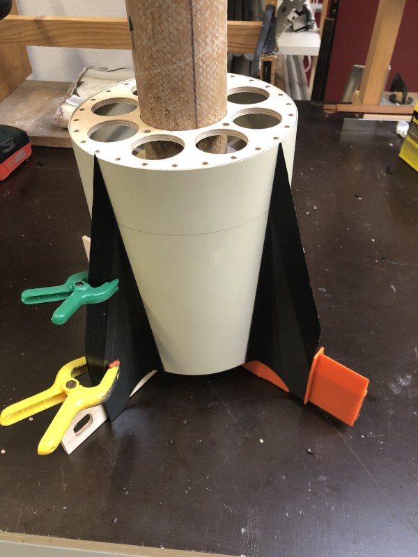 Ich möchte den Turm während des Fluges wie beim Original abwerfen, dazu muss er einen Antrieb in Form eines B4-4 Motors bekommen, ich muss aber noch Testen ob das genug Schub liefert um den Ganzen Tower abzuwerfen. Ein C6 passt evtl. noch rein, aber das wird knapp.