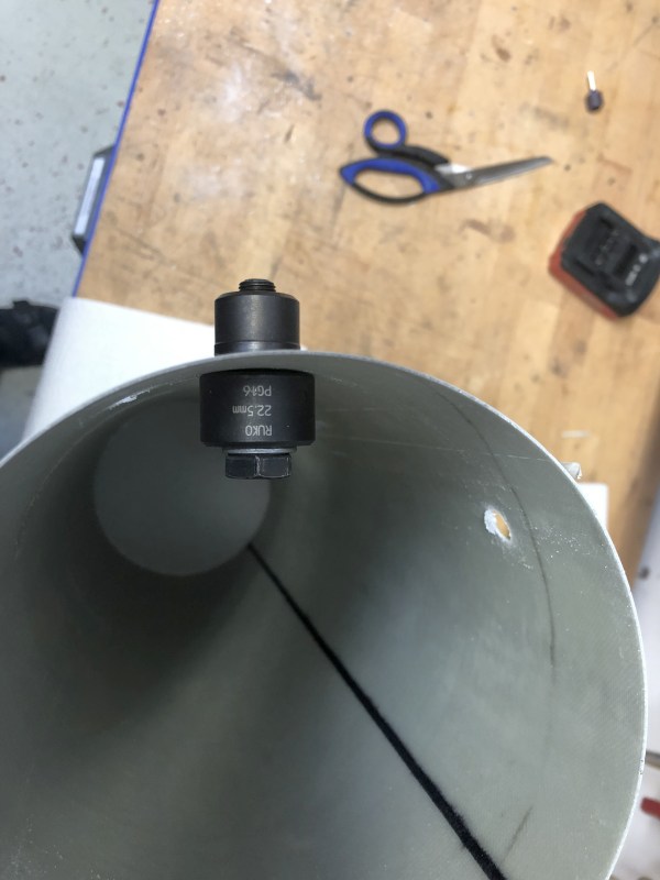 Dann mit einem Lochschneider 19,5mm Löcher geschnitten, hat sich als die praktikabelste Methode herausgestellt.