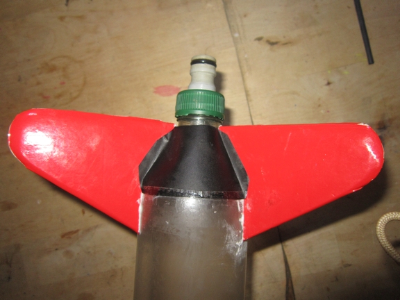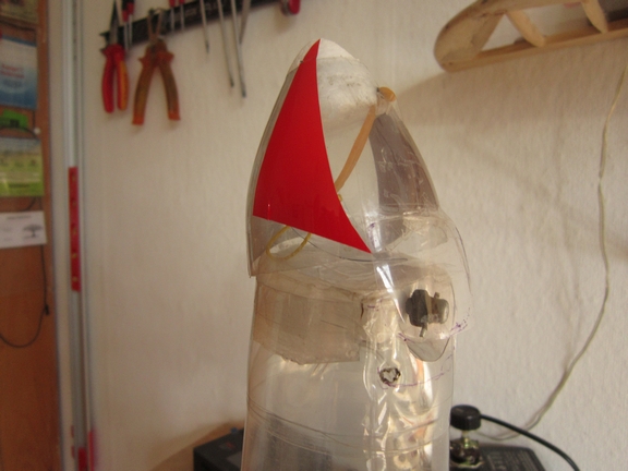 Hab das Papier beidseitig lackiert und mit Sekundenkleber drangepappt. Mit der Düse bin ich nun bei 142 g und es fehlt nur noch die Spitze mit Fallschirm. Da mein großes Fallschirmsystem für die 6 L-Zebra-Rakete auch nur 57 g wiegt, sollte es hinhauen. Zitat: Nun ja. Wie ich sagte: Ich hab bis jetzt etwa 10 g Kleber verbaut. Wenn ich mir da von 10% auf die Finger schmiere dann wird meine Haut das wohl überstehen. Bei Youtube sieht man ja öfter, wie Leute mit Unmengen Kleber rum asen. Das hilft aber gar nix. Der Kleber muss an die richtige Stelle und das ist bei einer Wasserrakete ein extrem enger Spalt zwischen den Flaschen. Für sorgfältige Verteilung muss man sorgen, daher mein Auftrag mit Zahnstocher. Und da hab ich schon Probleme, den mit ollen Plastikhandschuhen richtig zu betätigen. Seit einigen Jahren hab ich schon ein bisschen den Eindruck, daß das Sicherheitsdenken und die Angst vor Gesundheitsgefahren ein bisschen übertrieben ist. Vor 20 Jahren hab ich am Orinoco diverse male mit Unmengen Diesel rumpanschen müssen. Davon hing mein Leben ab. Und ich bin immer noch gesund. |