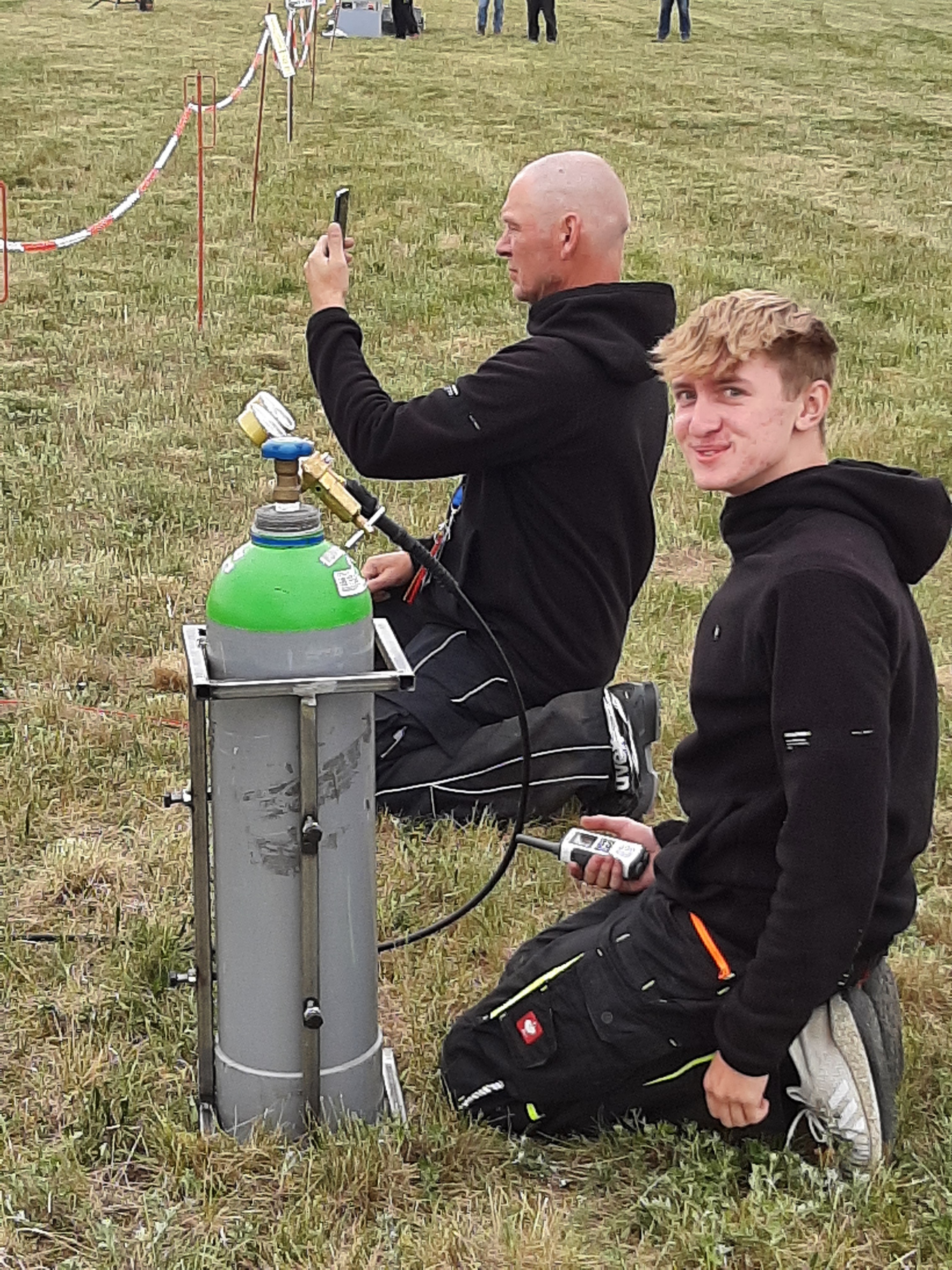 Janick und Heiko bei der Startvorbereitung ihrer tollen Wasserrakete wink !