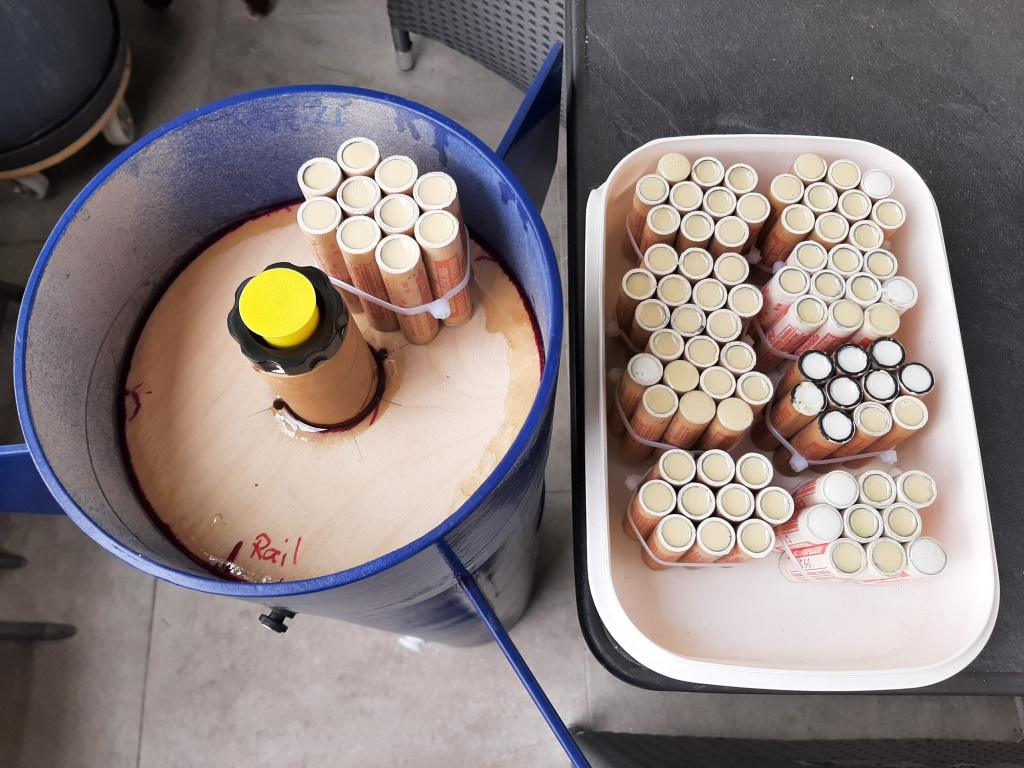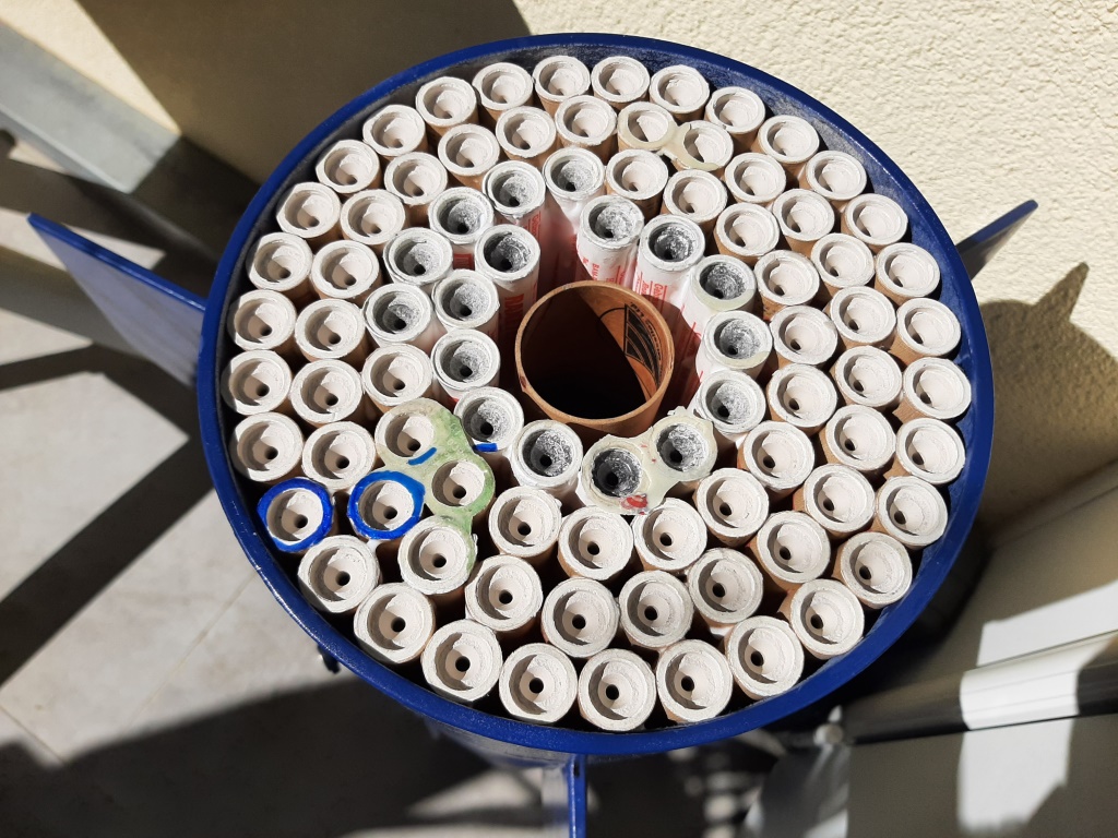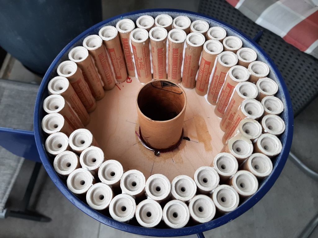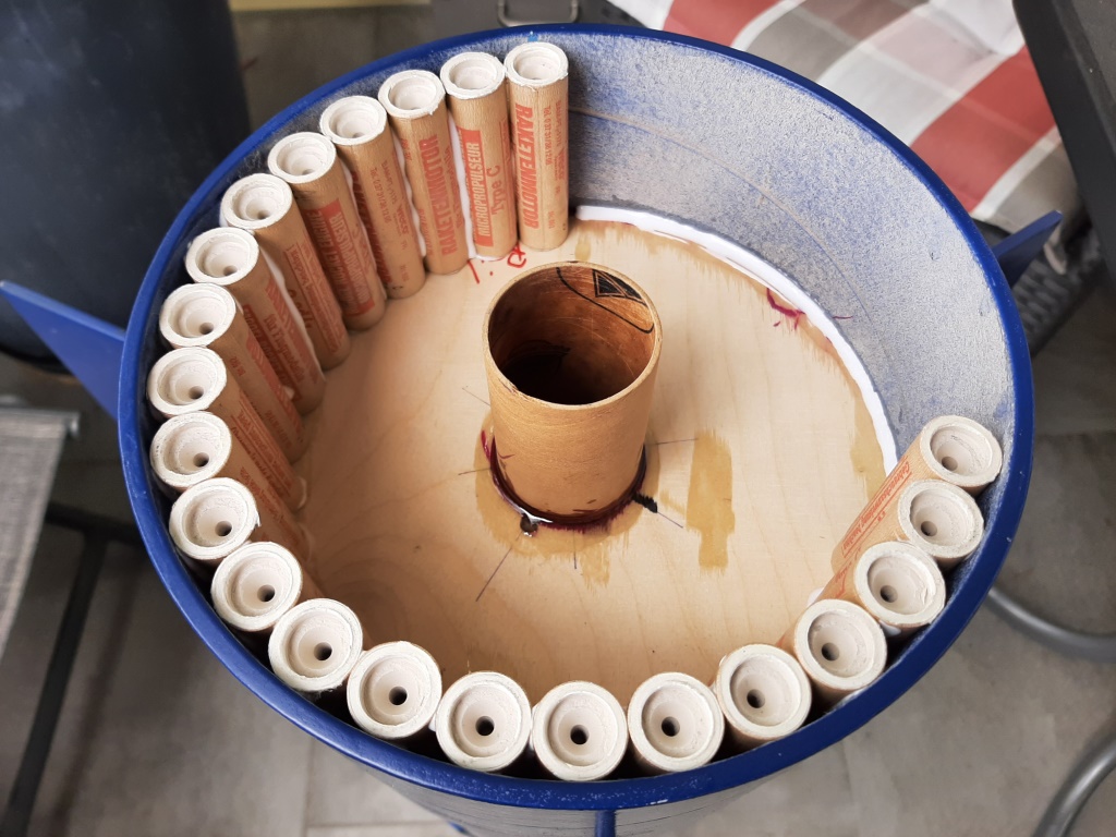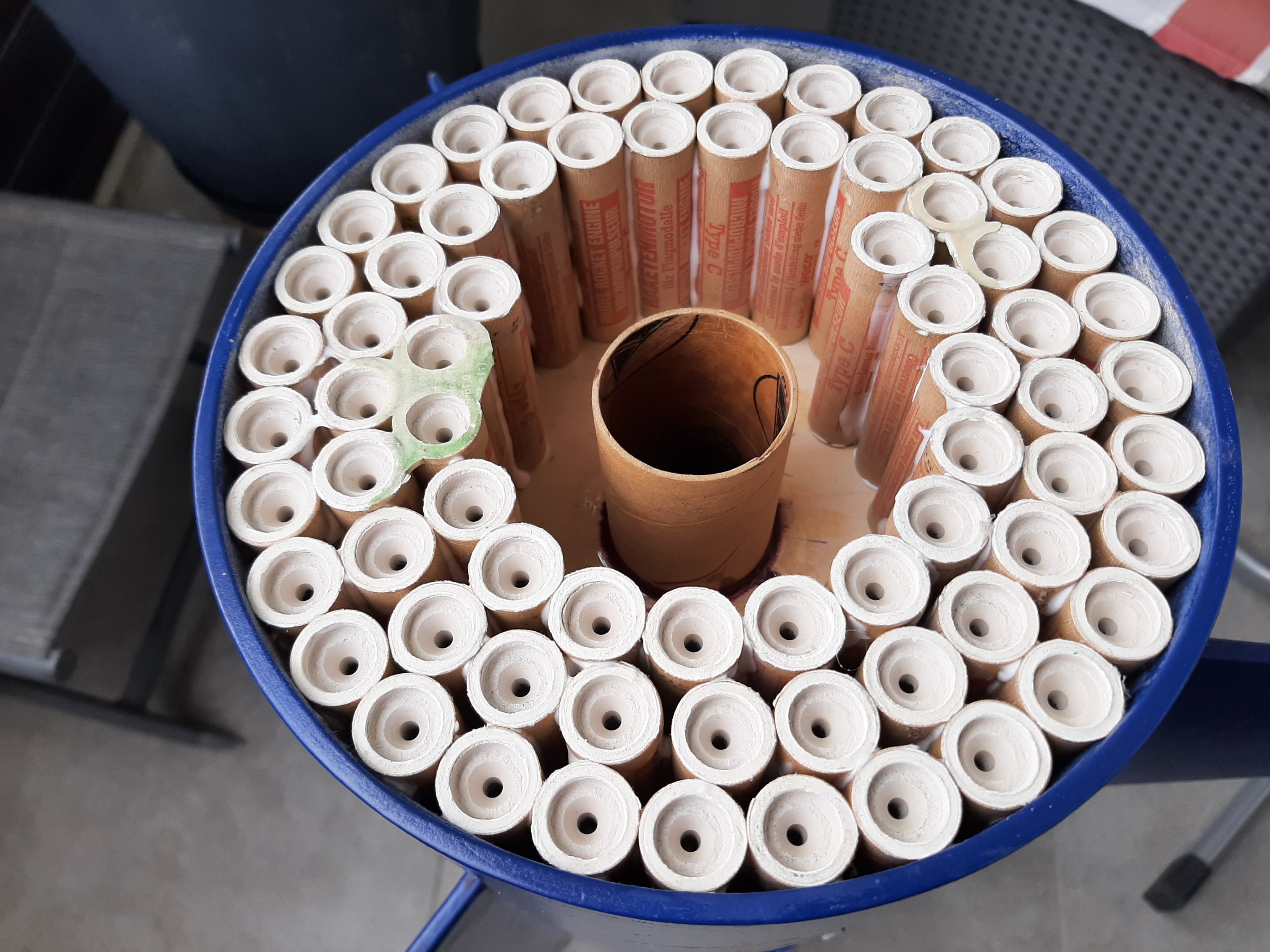 Um ein eventuelles fehlerhaftes Durchzünden von hinten über die Ausstoßladung zu verhindern, wurden die Motoren von hinten mit Resin Gieißharz verschlossen. Außerdem habe ich aus jeder Schachtel (10er Packung) vorab einen Testmotor entnommen und gezündet. Alle Tests ohne Probleme, die Motoren funktionierten so wie sie sollen...  ! Andreas