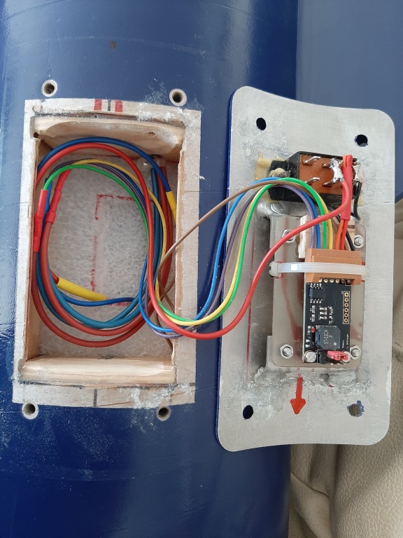 Die Hohlräume zwischen der Motoren würden mit feuerfesten Brandschutzschaum ausgeschäumt... Nach dem durchhärten dann den überflüssigen Schaum einfach mit dem Cuttermesser abschneiden... Der "alte" Altimax wurde noch mal ausgebaut und hat beim Hybrid Testflugtag noch mal einen Testflug erfolgreich absolviert, danach durfte er wie der in die EBAY der Medusa... Dann noch eine neue leistungsstarke 9V Alkali Batterie eingebaut und fertig! Alles mal zur Probe zusammen gesteckt und den Schwerpunkt ermittelt und "eingestellt". Leider ist das Handling mit so einem großen Modell eben nicht gerade einfach und die Partnerin muss schon manchmal viel Verständnis zeigen wenn kurz vorm Flugtag so ein Teil in der Bude rumsteht....