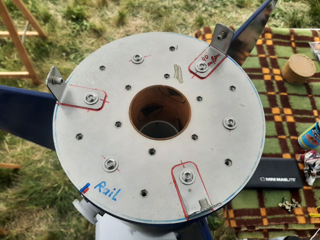 Zum Transport noch mal alles zerlegt... (wie damals auf dem Autodach habe ich mich nicht mehr getraut...) vor Ort die Halterung für den Cluster Booster fertig zum Anflanschen...