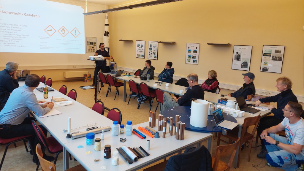 Ich möchte hier einfach noch mal die Gelegenheit nutzen und mich bei allen Dozenten ( Roman, Hagen und Torsten) für ihre tollen und sehr Interessanten Vorträge zu den Themen: Eigenbau von Hybrid und Flüssigkeitstriebwerken, Herstellung von Hybrid Reloads und Schubmessstände und deren Auswerteelektronik bedanken! Ihr habt uns sehr kompetent und anschaulich sehr viel Wissen und Erfahrung zu den jeweiligen Themen vermittelt !Vielen Dank auch noch einmal an Florin, den Leiter der Sternwarte Eilenburg, für die kostenfreie Bereitstellung deren Räumlichkeiten für unser umfangreiches Schulungsprogram ! Und natürlich Danke an alle Teilnehmer der HybridDays 2025 für euer Dabeisein! Es war toll mit euch zu testen, zu fliegen und Erfahrungen auszutauschen! Und beim abendlichen Fachsimpeln und Gesprächen am Stammtisch im Veranstaltungshotel viel zu lachen und Spass zu haben! DANKE ! Andreas Und jetzt her mit den Fotos, für alle die, die nicht mit dabei sein konnten....