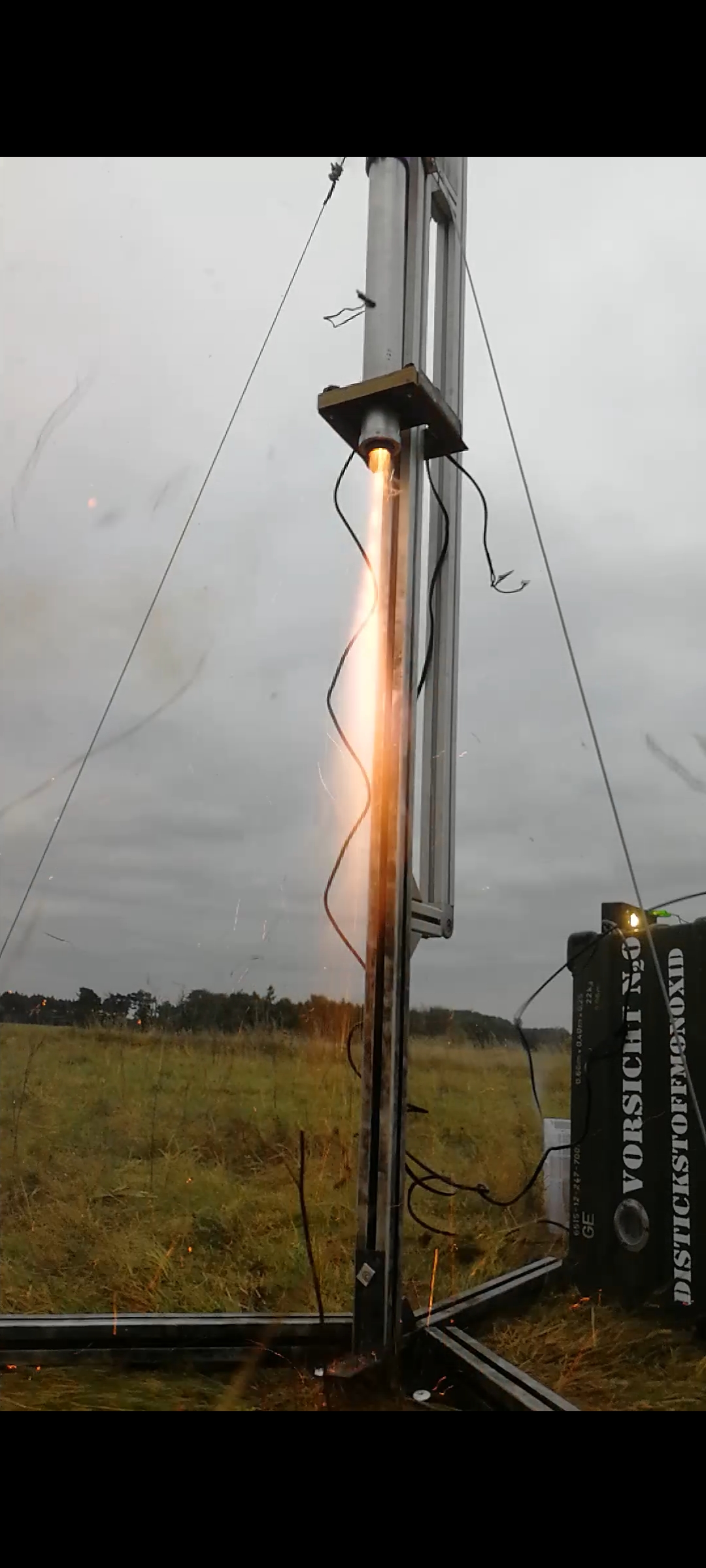 kostenfrei vor Ort zur Verfügung gestellt !Es handelt sich dabei um zwei volle und eine halbvolle 2Kg N2O Flaschen, also haben wir von der Seite schon mal ca.5kg Oxydator zur Verfügung !Ein Versuch dabei ist schon mal das genaue wiegen der Flaschen vor und nach dem Fliegen um feststellen zu können wie viel N2O der Anbieter wirklich in die Flaschen füllt und wie viel davon für uns in flüssiger Form nutzbar ist... !Andreas |