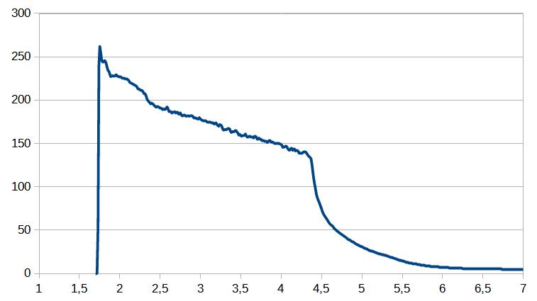 Zitat: Das war ein 38mm Motor mit 600mm Länge, früher mal ein West Coast Hybrids I110, der aber wie hier beschrieben verändert wurde. Das Grain war so lang wie das Original, könnte aber deutlich kürzer werden um mehr Platz für Oxidator zu machen Geworden sind es 526 Ns (23% mehr!) und folgende Kurve:Ich denke die 600Ns sind knackbar mit weiteren Optimierungen