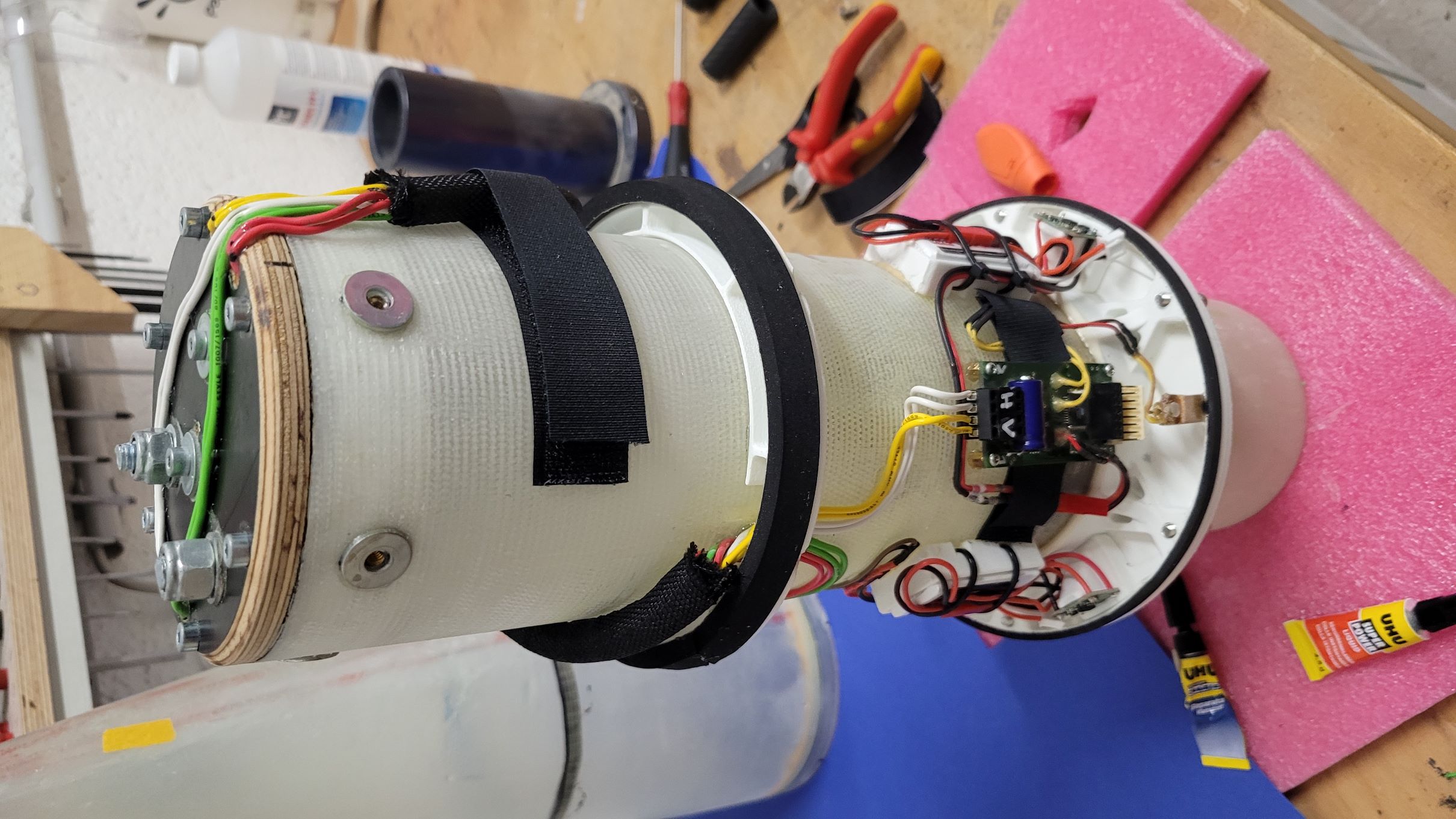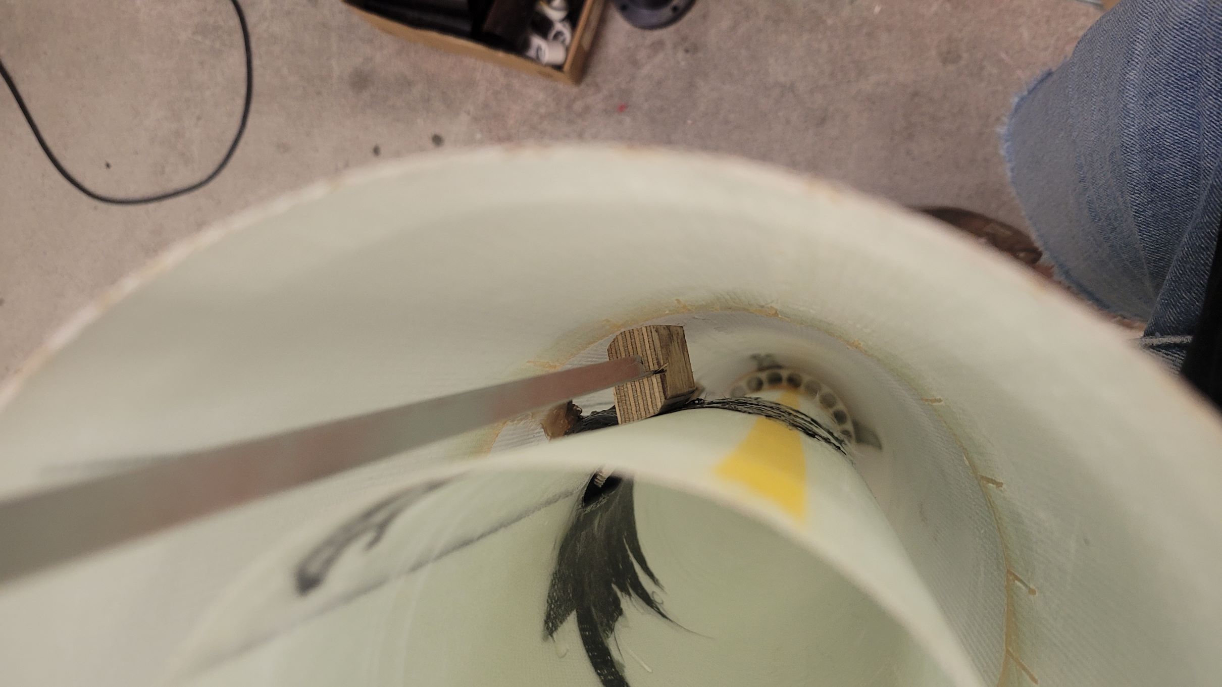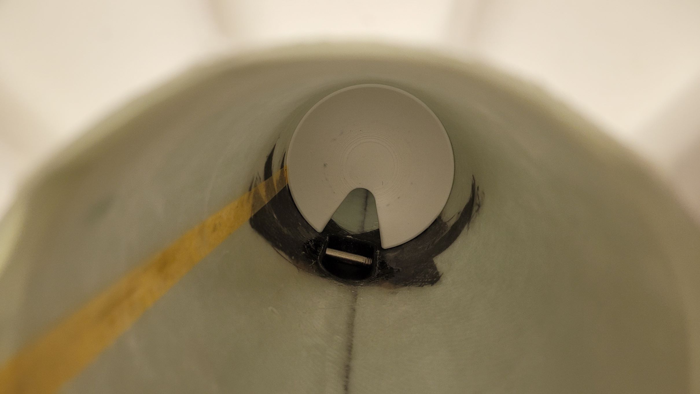 Zwei Faktoren haben hier mitgespielt - die Entlüftungslöcher (Größe und Positionierung) und die Oberfläche der Spitze. Elektroniken mit Drucksensor in der Spitze zu verbauen ist nicht ideal, da die Entlüftungslöcher dann nicht an einem geraden Stück Rohr platziert werden können und schneller Verwirbelungen etc. zu stärkerem Rauschen in den Druckdaten führt. Die Elektronik filtert sowas (hoffentlich ausreichend) und erkennt den Gipfelpunkt weiterhin zuverlässig genug für die Bergung. Ich war mir nicht sicher wie groß die Entlüftungslöcher sein sollten, habe daher das Volumen der Elektronikkammer grob berechnet und die gängigen Faustformeln darauf angewendet. Herausgekommen sind erstmal riesige Löcher... also habe ich das Volumen reduziert indem ich einen weiteren Spant eingebaut habe, der den vorderen Teil der Spitze von der Elektronikkammer abdichtet (s. Bilder). Trotzdem waren die berechneten Löcher echt groß, am Ende habe ich 6 Stück à 3,5mm gebohrt. Sah auch nicht schön aus... Die Oberfläche der Spitze war an an der Trennfuge der GFK-Form auch nicht schön, da habe ich ein paar Luftblasen einlaminiert die am Ende noch als Krater in der Oberfläche übrig waren. Die haben definitiv für einen Haufen Verwirbelungen geführt, welche sicherlich auch an den Entlüftungslöchern Einfluss hatten. Das abgetrennte Volumen im vorderen Teil der Spitze hatte keine eigene Entlüftung. Was sagten die Höhenmesser? Der Altimax Simply hat eine maximale Höhe von über 600m erkannt (unrealistisch), der SALT gab 366m aus (realistisch) und vor Ausstoß einen scharfen Höhenabfall (=Druckanstieg), als wäre die Rakete von jetzt auf gleich 20-30m gefallen und das auf dem Weg zum Gipfelpunkt... komisch! Meine Vermutung ist daher, dass das Entlüftungsloch nah am Simply eines der war, die am meisten Verwirbelung abbekommen haben und, dass die Luft aus dem abgetrennten vorderen Teil der Spitze irgendwann durch die Dichtung in die Elektroniksektion gedrückt hat. Das würde den Druckanstieg erklären den der SALT gesehen hat. Änderungen vor Flügen Nr. 2 und 3 Des Raketeurs Lieblingsaufgaben: Spachteln und Schleifen Jetzt hat die Spitze eine durchgängige glatte Oberfläche. Die großen Löcher wurden verschlossen und durch kleinere (~2mm) ersetzt. Außerdem hat die vordere Sektion 3*1mm Entlüftungslöcher bekommen. Und siehe da: alles g'schmeidig! Beide Altimeter erkennen die gleiche Höhe und den gleichen Gipfelpunkt!