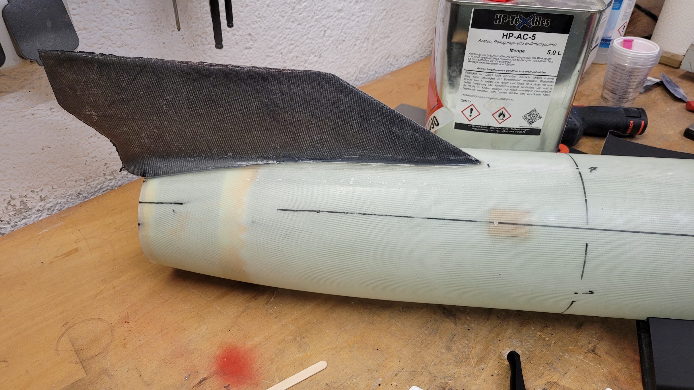 Zitat: Ich bin mit dem Baubericht etwas hinterher, aber ich kann schon mal so viel sagen: die A&S-Maßnahmen haben gehalten Zusätzlich den Carbon-Verstärkungen habe ich am Schockbandanker noch zwei Sperrholzklötze verklebt. Dazu habe ich erst Quader ausgesägt, mit einem Schlitz versehen, damit ich ein Flacheisen drin verklemmen kann und 2 diagonale Ecke rundgeschliffen. So konnte ich sie von oben gut einsetzen - an der Engstelle (Kuppler der Rumpfverlängerung) vorbei und ein Position rotieren. Verkleben ging gut, fotografieren eher weniger: Das Befestigen der Flossen ging dank einer gedruckten Vorrichtung wie von selbst. Als Klebstoff habe ich einen Strukturklebstoff verwendet, der auf GFK/CFK hochfeste aber flexible Verklebungen ermöglicht. Es ist wirklich erstaunlich wie viel diese Klebstoffe mehr können als bspw. 5-min-Epoxy Die Form der Flossen ergibt in der unteren Hälfte eine große Klebefläche, nach oben hin stehen sie aber nur senkrecht auf, da habe ich mit Fillets nachgeholfen:Banana for scale ![]() Sandwiches stärken! Das gilt auch für Composite-Konstruktionen wie die Flossen, also wurden die ausgeschäumt. Den guten 2K PUR Hartschaum habe ich nicht so schnell ranbekommen und stattdessen - trotz Andreas zu 110% zutreffender Warnungen - 2K Schaum aus der Dose verwendet. Die 3min Verarbeitungszeit sind eine Lüge und das Zeug kommt innerhalb von kürzester Zeit so derartig zäh aus der Düse, dass gar nicht daran zu denken war mittel bereitliegendem Verlängerungsschlauch auch das Heck noch auszuschäumen... Getrimmt: Apropos Trimmen: ich mag kein Ballastgewicht. Klar, bei manchen Modellen führt kein Weg daran vorbei, aber wo möglich möchte ich kein Modell unnötig schwer machen. Deswegen landet bei der A4 alles was eh rein muss in der Spitze. Und viel gibt es da nicht außer Elektronik und Bergungssystem, erstere wurde am Innenrohr der Spitze untergebracht, erstmal ein Simply und ein SALT: Von unten sieht der Abschlussspant des Innenrohrs so aus: Der Hauptschirm steckt in einem Packsack und hängt direkt an der Pyromechanik, kann also nirgends hin und bringt den Schwerpunkt nach vorn. Damit der Vorschirm und die ganzen Leinen beim Start nicht ins Heck rutschen habe ich noch einen Schott gedruckt, der auf Höhe des Schockbandankers auf einem schmalen Ring aufliegt: Der Schott kann natürlich entnommen werden wenn längere Motoren geflogen werden sollen Apropos fliegen: tut sie! Gestern war es soweit... aber dazu mehr wenn ich ein paar Fotos davon habe. 'Technisch gesehen hat alles funktioniert!' -Ich (oft kopiert) |