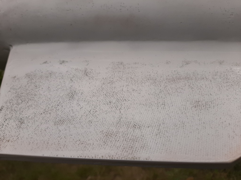 Ich hatte es ja schon befürchtet, das Aramidgewebe macht auch beim lackieren Schwierigkeiten... Irgendwie ist diese faserige Struktur nicht klein zu kriegen . Das Laminat lässt sich im Gegensatz zu GFK oder CFK überhaubt nicht schleifen! Es sieht so aus, als ob das Aramidgewebe das Harz garnicht aufnimmt, sondern nur umschließt. Das ist so, als ob du versuchst, deinen Teppich glatt zu schleifen.... Ich kann euch also nur davor warnen meinen Fehler nicht nachzumachen, Aramidgewebe ist zwar extrem stabiles Zeug und in der inneren Strucktur super fest aber für ein Oberflächenlaminat ist es echt "Sche....." Ich kann es jetzt nicht mehr ändern aber da der Sicherheitsabstand beim Start der IKARUS eh etwas größer sein sollte, sieht man die Oberfläche eh nicht so genau... Außerdem gibt es ja nur zwei Sorten von Raketen, die die schön aussehen und die die nie kaputt gehen.....  ! Andreas Das Aramidgewebe saugt den Spritzspachtel und die Grundierung einfach weg...!?