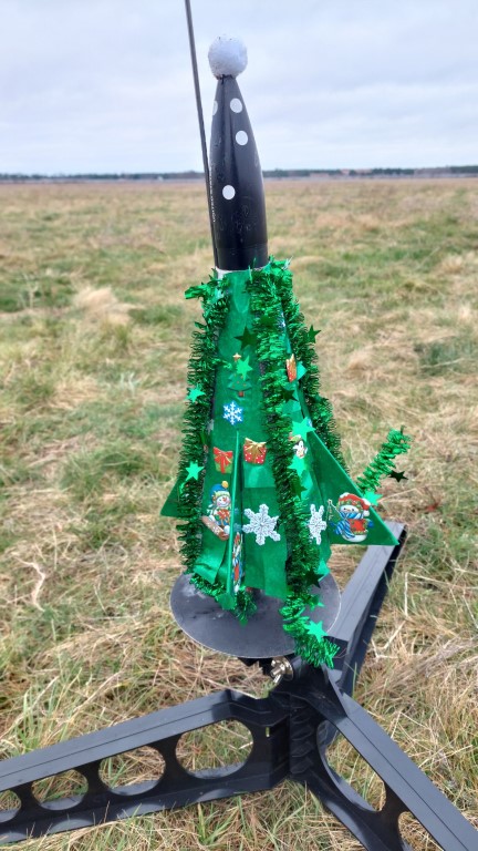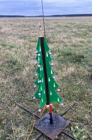 Der Weihnachtsbaum flog auf einem zu dünnen, daher biegsamen Leitstab. Das führte zum Flug in der Art eines Marschflugkörpers mit einer unsanften Landung. Von den 20 angebrachten Kugeln blieb eine dran. Aber siehe da: Im ersten Gang fanden sich 14 Kugeln, bei einem weiteren Gang, der zufällig in der Nähe des Landeplatzes vorbeiführte, fanden sich weitere 5 Kugeln, sodass alle 19 gefunden wurden!