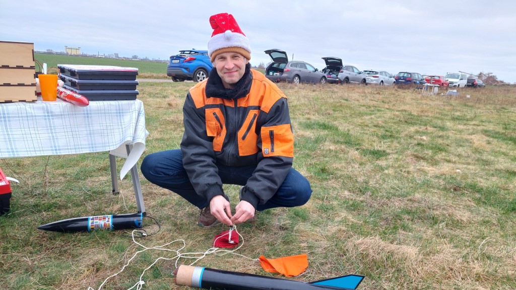 Raketen mit Weihnachtsmützen fliegen gut, aber die Mütze kostetete mehr Höhe als erwartet wodurch die Verzögerung der Ausstoßladung zu lang war, aber gerade noch rechtzeitig vor der Landung den Fallschirm auswarf.