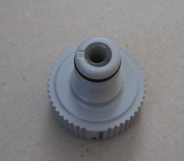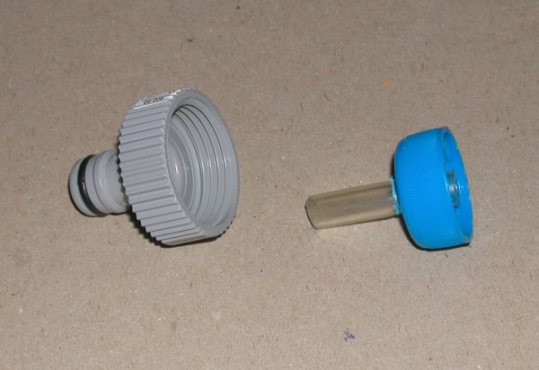 Das Schlauchstück wird in das Gardena-Hahnstück geklebt: