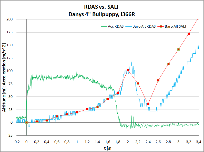 Aber was ist mit dem Druckanstieg (= kleinere scheinbare Höhe) bei 2.4 sek ? Denn dieser scheinbare Abstieg der Rakete wurde vom SALT als Apogee detektiert und hätte bei ca. 100m/s (=grüne Kurve, nicht auf den Screenshots komplett zu sehen) den Fallschirm ausgeworfen ? Geändert von Dany am 07. Juni 2008 um 16:29 |
