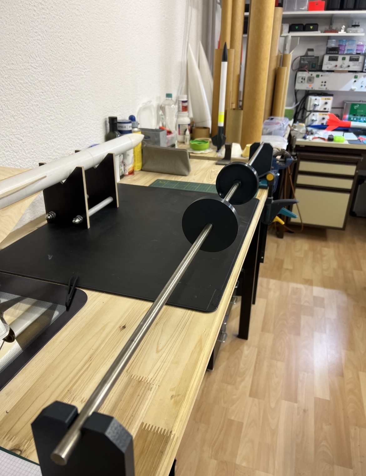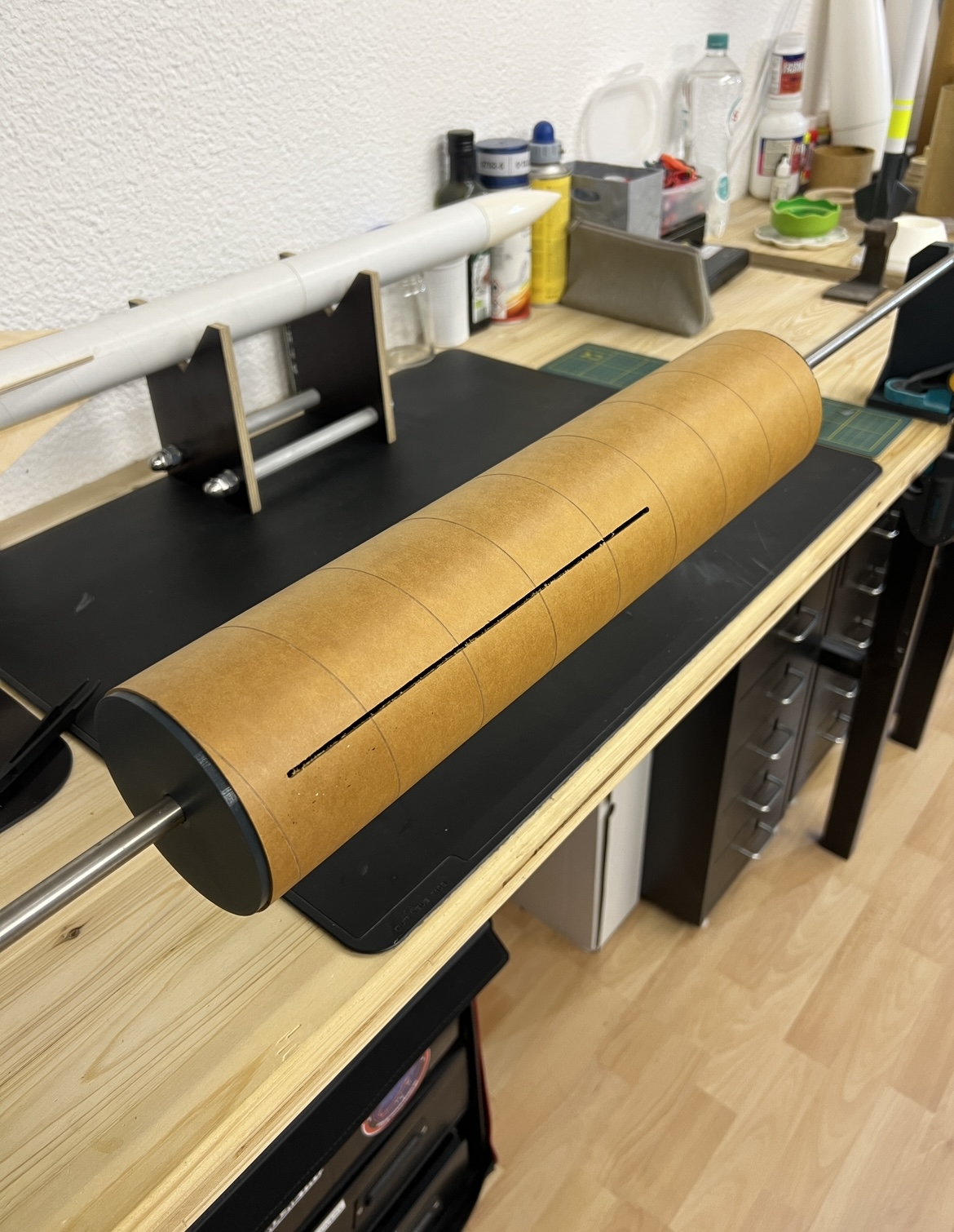 Sieht cool aus! Ich hätte allerdings Angst, dass die (Scheiben-)Halter festepoxiert werden wenn Du das Rohr verglast? Hast Du da ein Trennmittel vorgesehen?
