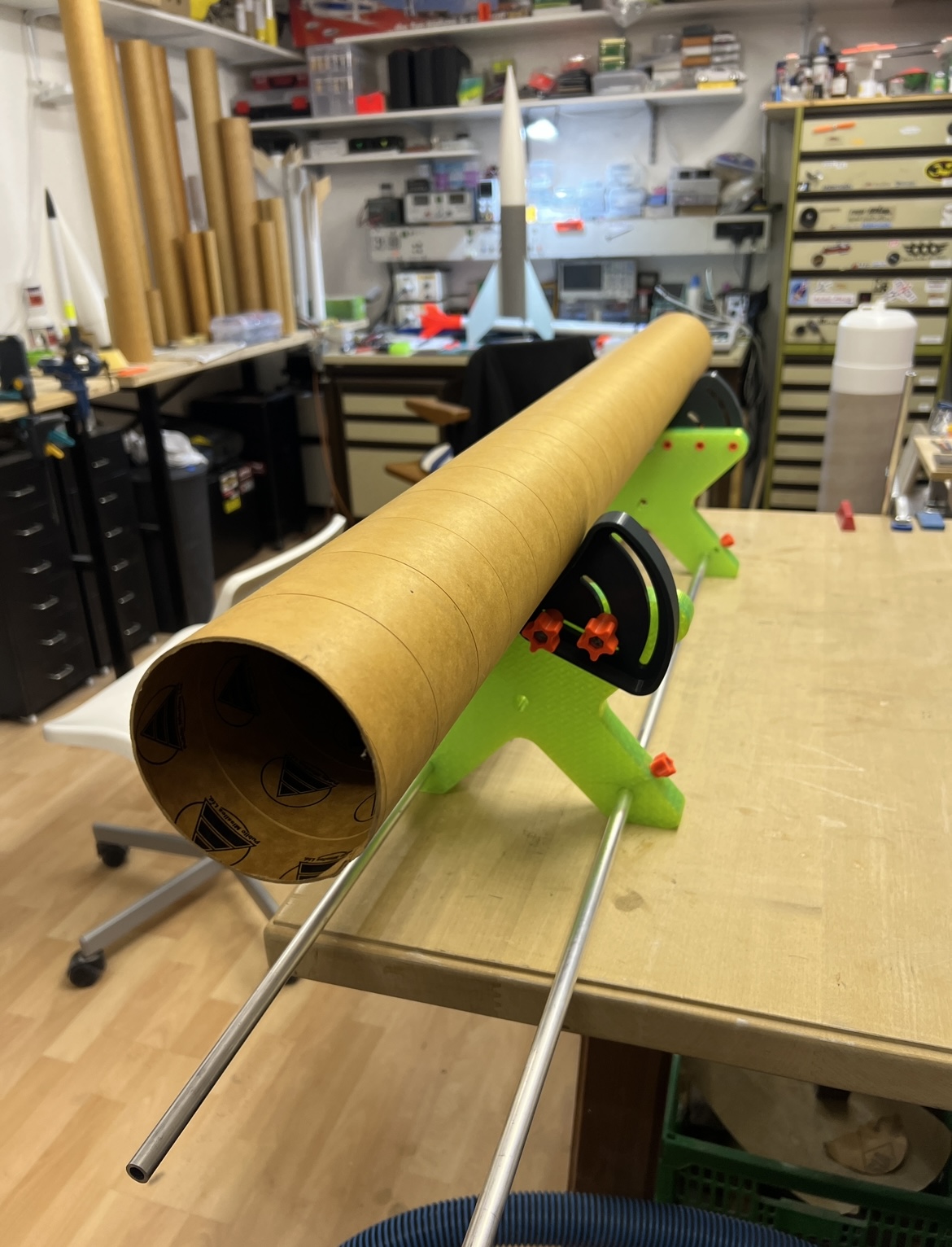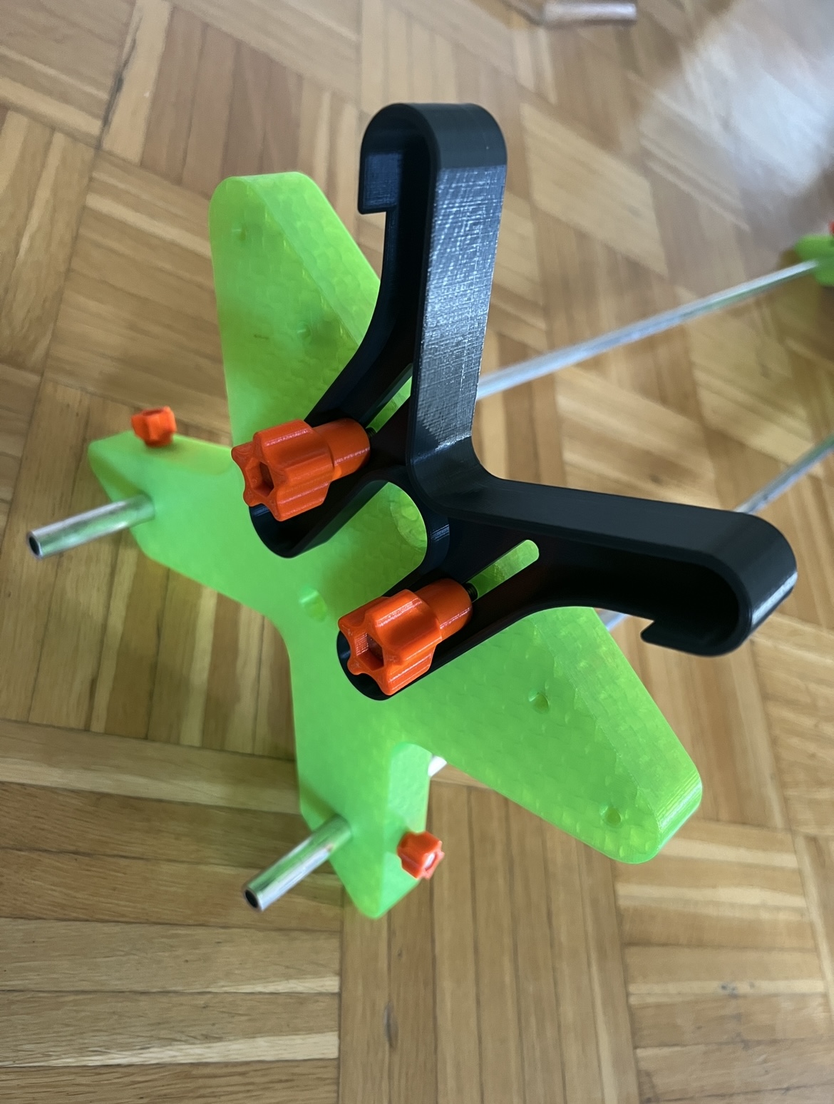 Und um zukünftig auch die größeren Modelle besser beim Basteln / Bearbeiten zu fixieren habe ich noch einen Rohr Halter ( Open source RC Modell Stand) gedruckt .. dieser kann verschiedene Halter aufnehmen und sich genau auf den jeweiligen Durchmesser anpassen … dem jetzigen hab ich mal zwei 1m Rohre spendiert um auch große Rohre aufzunehmen … Drucke grade einen zweiten den ich dann mit 2 mal 50cm Rohre nutzen will. Für kleinere Rohre oder zum zusätzlichen Abstützen bei langen Modellen … Viele Grüße Marco